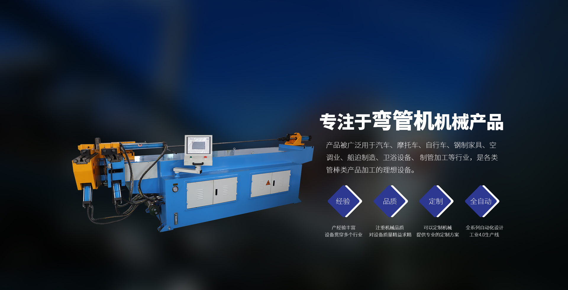 產(chǎn)品被廣泛用于汽車、摩托車、自行車、鋼制家具、空調業(yè)、船迫制造、衛(wèi)浴設備、制管加工等行業(yè),是各類管棒類產(chǎn)品加工的理想設備。